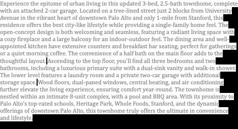 Experience urban living in this exquisite 2-bedroom, 2-bathroom West Side San Mateo condominium, a block from premier Hillsdale Shopping Center shopping, dining, and entertainment. Open living and dining floor plan with fireplace, wall of windows, breakfast bar, and a deck. The sleek kitchen overlooks the living area. The primary suite has dual closets and a luminous bathroom with a shower. The versatile second bedroom includes a nook perfect for work or study. An in-unit laundry room with extensive storage. Building amenities offer a private club experience right across the hall, featuring a recreation room with pool and ping pong tables, alongside a gleaming pool and tranquil courtyard for outdoor enjoyment. Ideally located near Caltrain, 92, 101, and 280, this condo links you effortlessly to the Peninsula, Silicon Valley, and San Francisco, defining the ultimate Peninsula lifestyle.