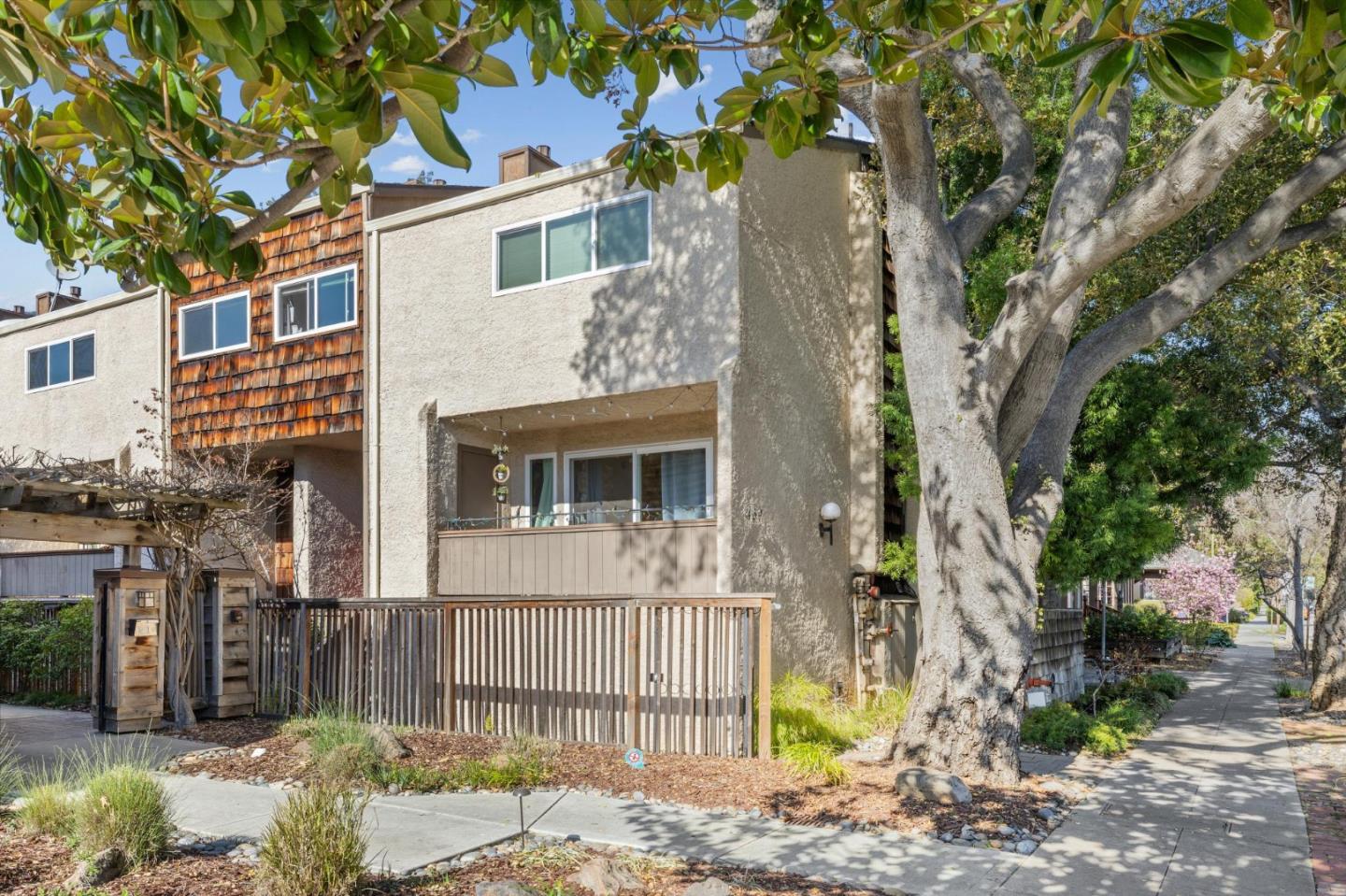 Experience the epitome of urban living in this updated 3-bed, 2.5-bath townhome, complete with an attached 2-car garage. Located on a tree-lined street just 2 blocks from University Avenue in the vibrant heart of downtown Palo Alto and only 1-mile from Stanford, this residence offers the best city-like lifestyle while providing a single-family home feel. The open-concept design features a radiant living space with a cozy fireplace and a large balcony for an indoor-outdoor feel. The dining area and well-appointed kitchen have extensive counters and breakfast bar seating. The convenience of a half bath on the main floor adds to the thoughtful layout. Ascending to the top floor, you'll find all 3 bedrooms and 2 bathrooms, including a luxurious primary suite with a dual-sink vanity and walk-in shower. The lower level offers a laundry room and a private two-car garage with additional storage space. Wood floors, dual-paned windows, central heating, and AC further elevate the living experience. The townhome is in an intimate 8-unit complex with a pool and BBQ area. Close to Palo Alto top-rated schools, Heritage Park, Whole Foods, Stanford, and downtown Palo Alto. 5-mile commute to Facebook, Google, and Microsoft. This townhome offers the ultimate in convenience and lifestyle.